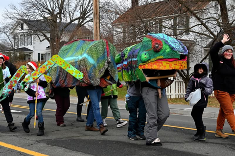 The chameleon puppet we created for the Clarke County Christmas Parade was